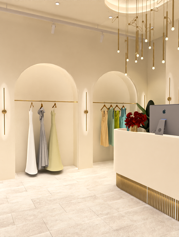 Mall of Istanbul’da yer alan abiye giyim markası Ilmio’nun mağaza tasarımını gerçekleştirdik. Abiye elbiselerin zarafetini ve sofistike duruşunu vurgulamak amacıyla, ürünleri ışıklı kemerler (arklar) içerisine yerleştirerek adeta birer hazine gibi sergiledik. Rengarenk elbiselerin ön plana çıkması için mekan genelindeki malzeme paletini mümkün olduğunca açık tonlarda tuttuk.